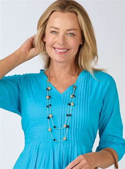With gold and black glass beads. Chain Lengths: 40.6cm/48.3cm with a 5cm extender.