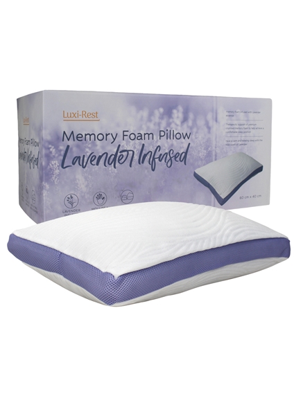 Infused with lavender this memory foam pillow combines the therapeutic support of premium crumbed memory foam with the calm relaxation of lavender. Size: 60 x 40 cm + 5 cm gusset.