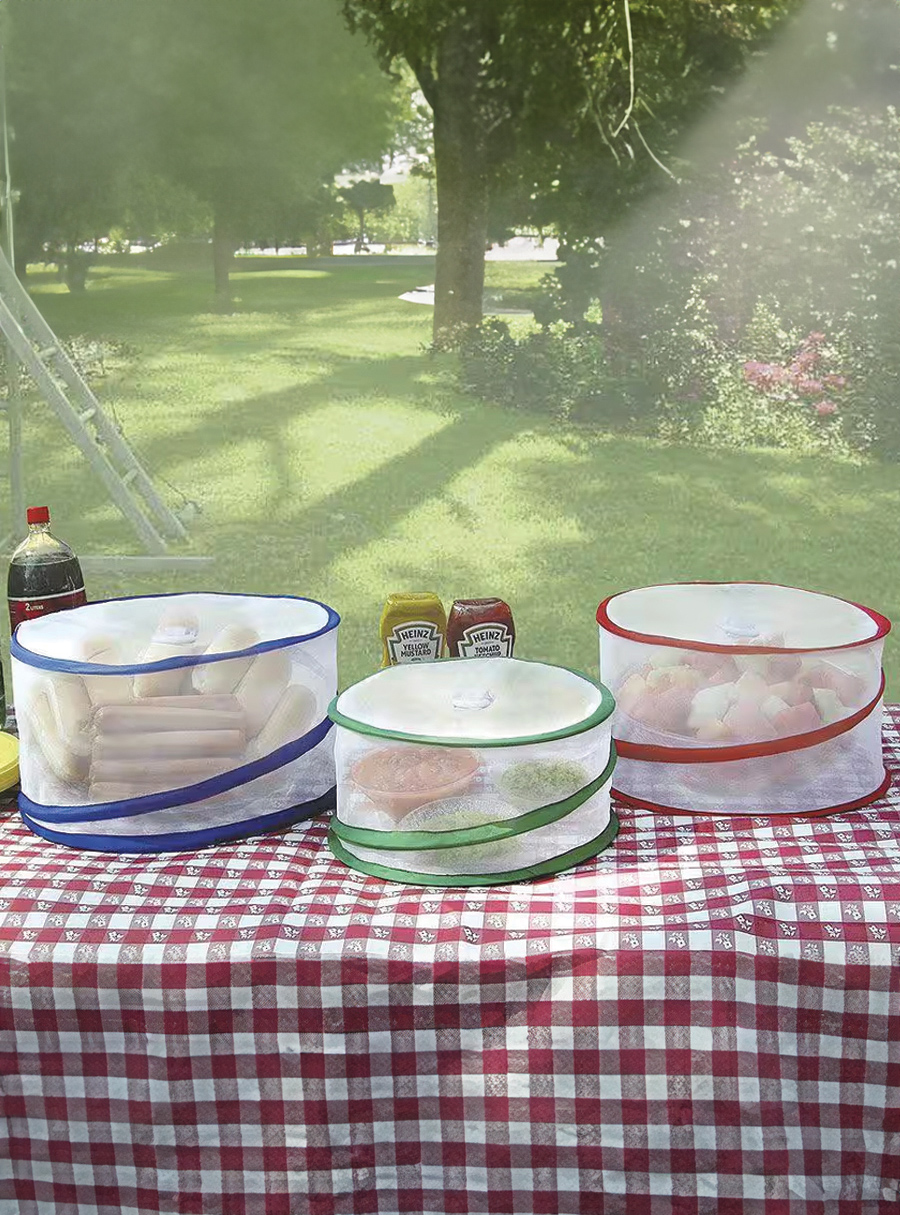 Keep your food fresh and bug-free with this 3-pack of pop-up mesh food covers. Designed to fit bowls and plates up to 10 cm high, they protect salads, cakes and more – indoors or outdoors. Lightweight, collapsible and see-through for easy viewing, these covers are perfect for picnics, BBQs and everyday use.