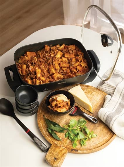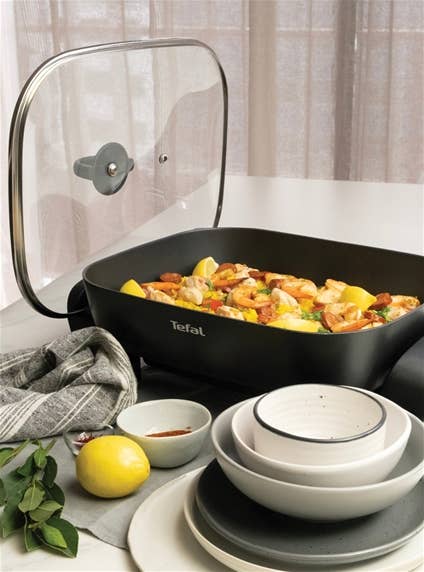 The TefalTM Easy Banquet Electric Frypan is your go-to solution for effortless family meals. Its generous 7L capacity serves up to 8 people, while 2200W of power and even heat distribution ensure fast, consistent results. With adjustable temperature control, a built-in lid holder for convenience and a non-stick coating for easy cleaning, it’s the perfect kitchen companion for everything from quick dinners to weekend feasts. Frypan Area: 37L x 30W x 8H cm. Weight: 3.8kg. Props not included.