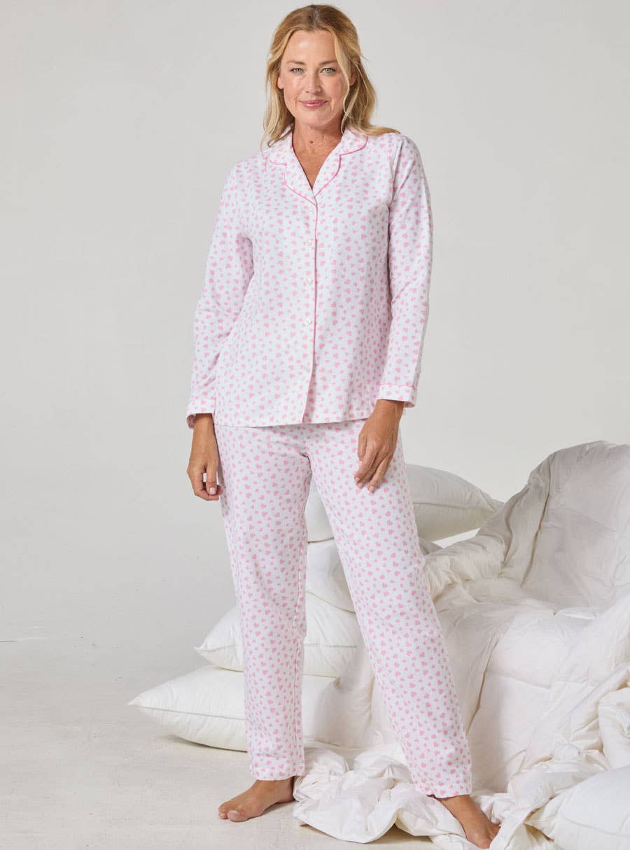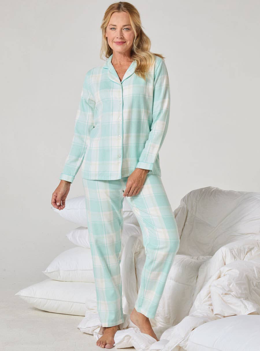 Brushed cotton PJ set in playful checks and prints, offering all-night comfort. 100% Cotton.