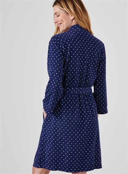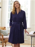Relax in style! Crafted from a soft cotton blend for comfort, this robe features a playful polka dot print and a flattering waist tie. It’s perfect for cosy mornings or winding down at night. 84% Cotton, 16% Polyester.