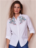 Crafted from 100% cotton, this long-sleeve shirt features roll-tab sleeves and delicate floral embroidery for a polished yet relaxed look. Perfect for effortless everyday style. 100% Cotton.