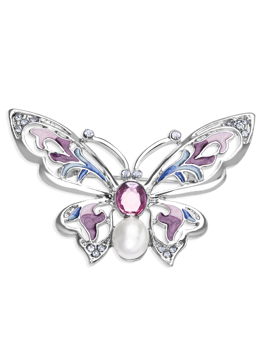Add a touch of elegance and sparkle to your outfit. Featuring a graceful butterfly design adorned with crystals and a faux pearl, this brooch is the perfect blend of charm and sophistication.