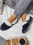 Enjoy ultimate versatility with our Worn 3 Ways Slipper — designed to adapt to your comfort needs throughout the day. Wear the plush sherpa collar up for maximum warmth, fold it down for a relaxed look, or slip them on mule‑style for quick, effortless comfort. The velour synthetic upper adds a soft, stylish finish, while the cosy sherpa lining keeps your feet snug all Winter long. Lightweight, flexible and wonderfully warm — the perfect slipper for every mood and moment. Velour Synthetic Upper and Sherpa Lining.
