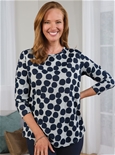 Round‑neck, relaxed‑fit printed jumper with a flattering hi‑lo curved hem for easy everyday style. 97% Polyester, 3% Elastane.