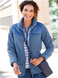 Fleece jacket in a trendy material mix of cozy teddy fleece and woven sections. Protective stand-up collar also with teddy fleece inside. 2 practical zipped pockets. Elastic piping along the zipper and at the cuffs. 100% Polyester.