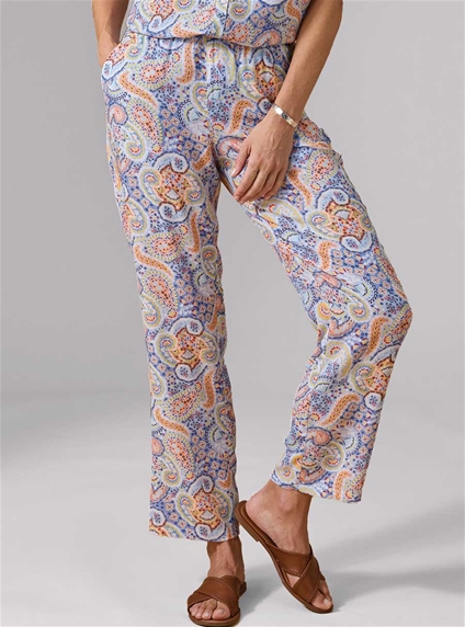 Made from soft, flowing viscose that is comfortable to wear. Its 7/8 cut which reveals the ankle is full of femininity. Elasticated waist and two side pockets. Straight legs. 100% Viscose.