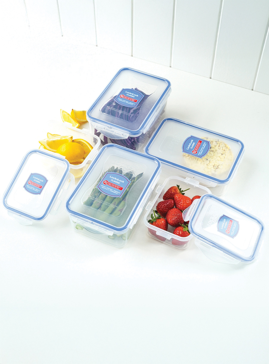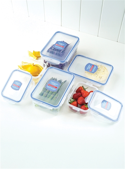 The Lock&LockTM Classic 5 Piece Food Storage Set offers smart, airtight storage with a patented four-hinge locking system and silicone seal to keep food fresher for longer. Built from durable, impact-resistant material, the containers resist heat, stains and scratches – perfect for daily use and transport. Designed for efficiency and sustainability, Lock&LockTM delivers practical, long-lasting storage solutions trusted worldwide. Includes one rectangular container each of 350ml, 470ml, 550ml, 850ml and 1.1L.