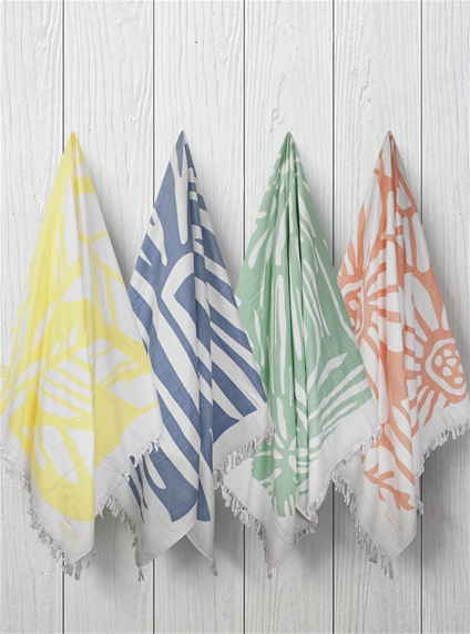 Soft extra large bamboo blend beach towel with fringe detail. Measures 90 x 170 cm.