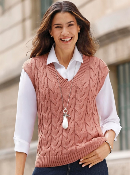 Cable-knit vest with intricate pattern throughout, in a wonderfully soft material blend. Ribbed knit at the V-neck and elastic hem.