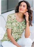 Shirt with compliments and feel-good guarantee! In a figure-flattering A-line shape and with pleated tucks at the round neckline. 95% Cotton, 5% Elastane.